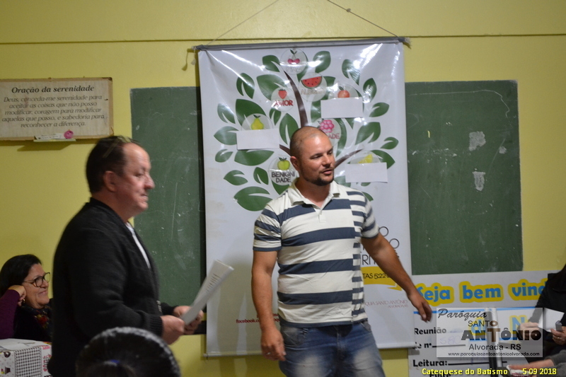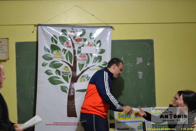 Na primeira quarta feira de Setembro, Pais e padrinho receberam a Catequese do Batismo na Paróquia Santo Antonio de Alvorada. Ao final da Catequese o Padre Joel Souza da Silva agradeceu a todos os que estavam presentes pela acolhida e deu a benção final.
