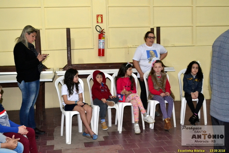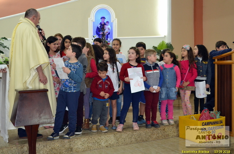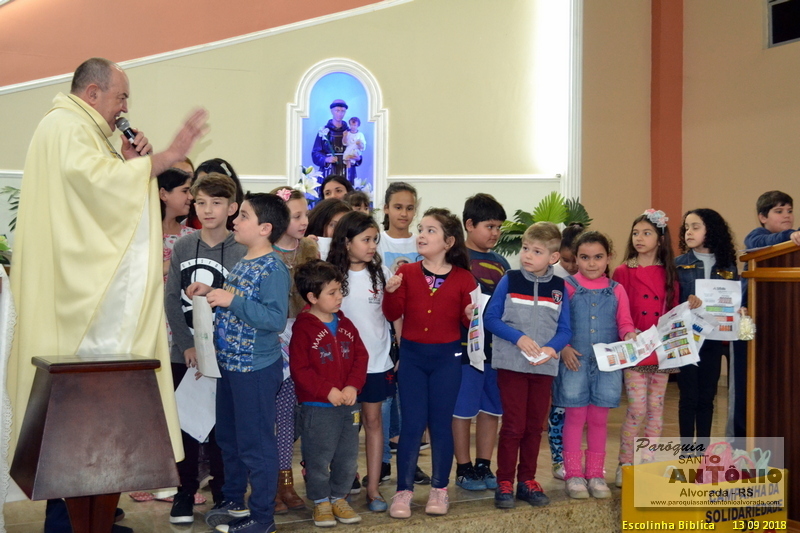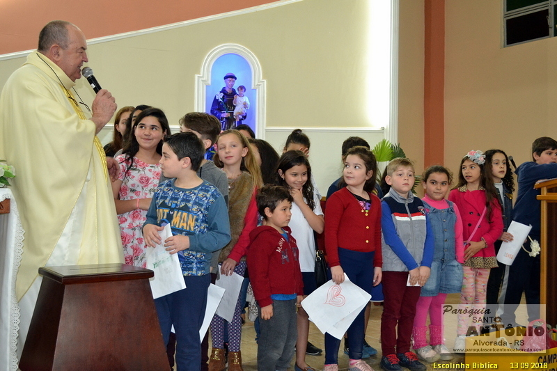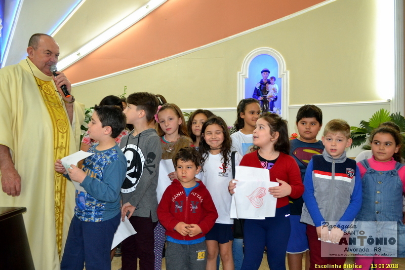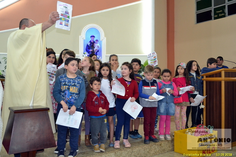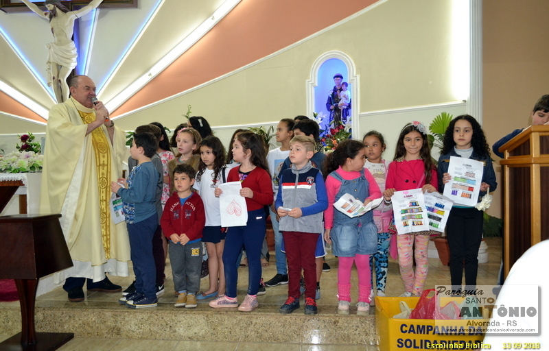 Durante a Missa do Padroeiro Santo Antônio as crianças participaram da Escolinha Bíblica, onde um grupo de casais de Paroquianos passaram a eles conhecimentos bíblicos. Neste mês por ser dedicado a Bíblia receberam informações a respeito do santo livro. No final da Missa foram levados até Igreja onde receberam a benção do Padre juntamente com a comunidade logo depois de serem questionadas sobre o que tinham aprendido.