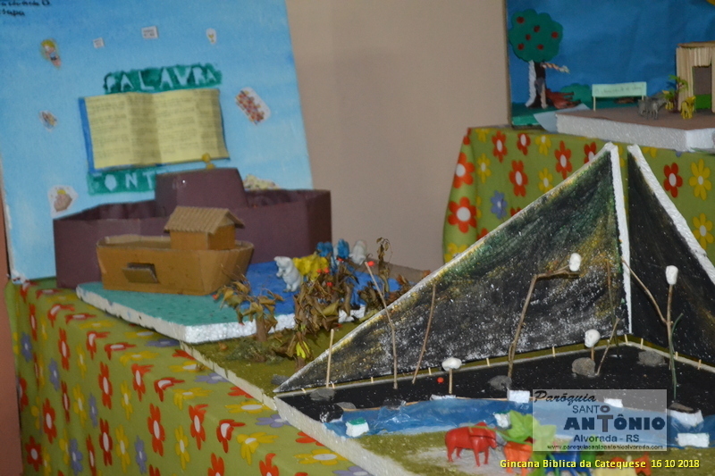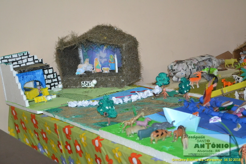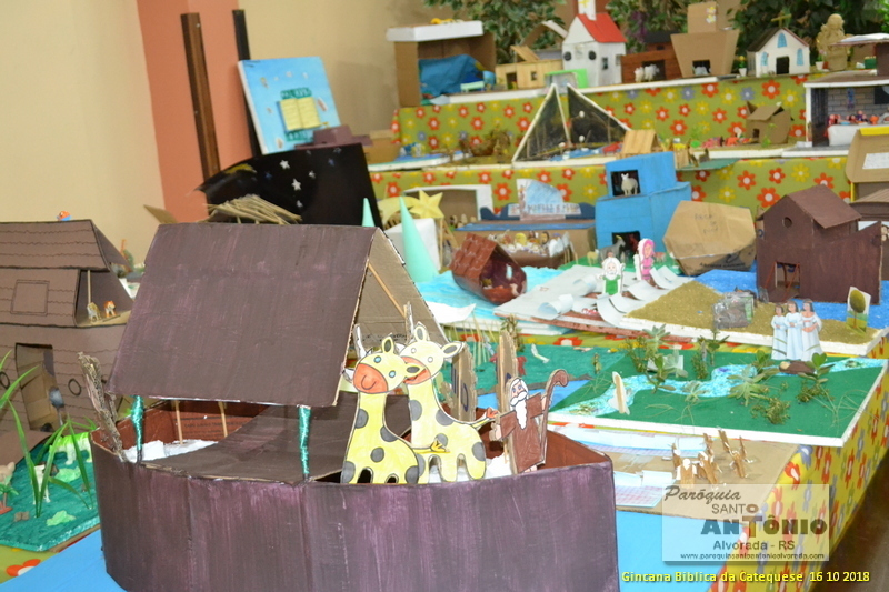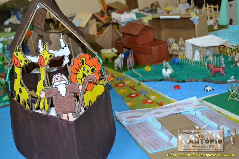 Já esta acontecendo a Gincana Bíblica dos Catequizados da 1° e 2° etapa da Paróquia Santo Antônio de Alvorada. Os Catequizados confeccionaram maquete com temas bíblicos com seus pais para exporem na Paróquia. Estas foram feitas da seguinte forma: os catequizados e os pais deveriam ler passagem da Bíblia e fazerem a leitura orante e logo após criarem uma maquete referente à leitura. Os Catequistas dão muito importância à participação dos Pais na Catequese.