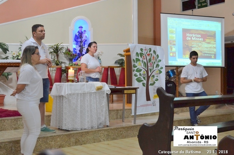 Catequese Paroquia Santo Antonio -Alvorada - RS 21/Novembro/2018 Cateques do Batismo 320 visualizações 0 curtidas Mais um grupo de Pais e Padrinhos se preparando para Batizar suas crianças.