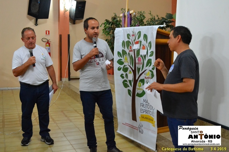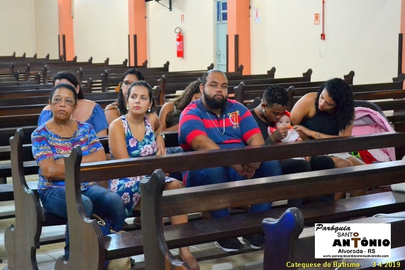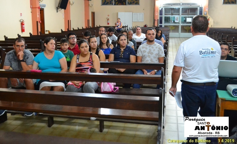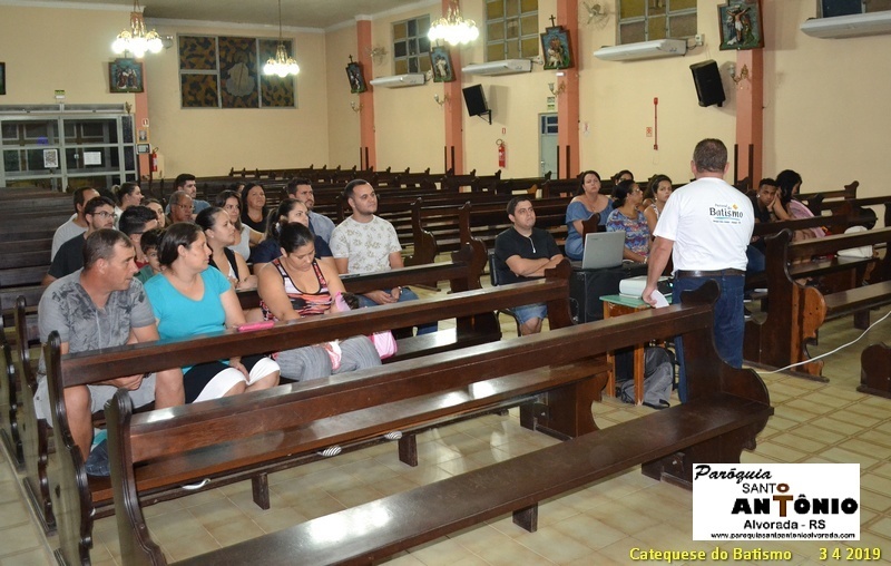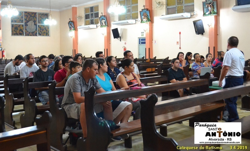 Primeira Catequese do mês de Abril. Pais e Padrinhos se encontraram em preparação para o Batismo de suas Crianças. No final o Padre Joel da Silva encerrou com a Benção e agradecimentos pela presença de todos. Sempre nas Quartas feiras às 20 horas há este encontro em preparação para o Batismo.