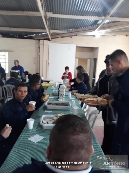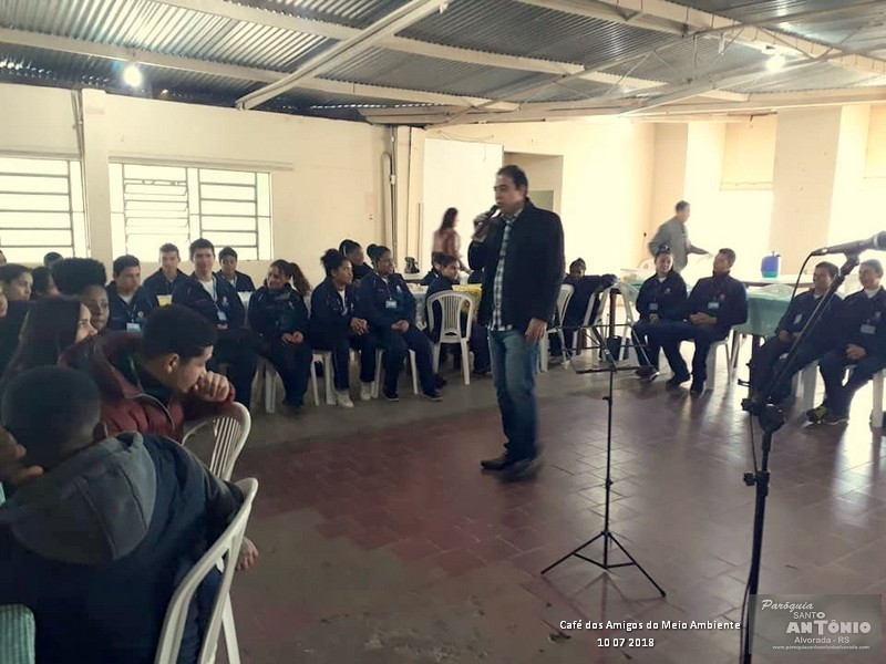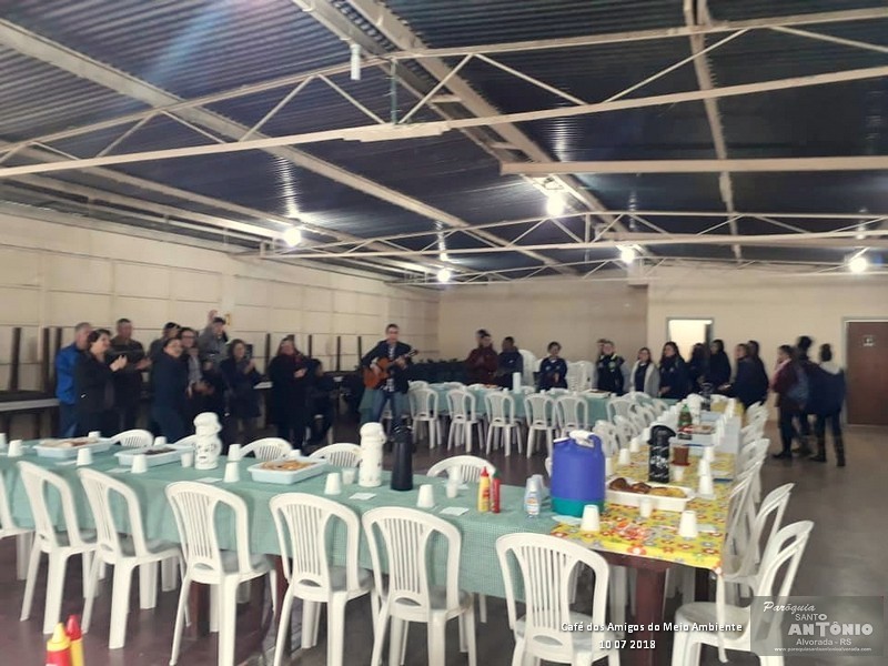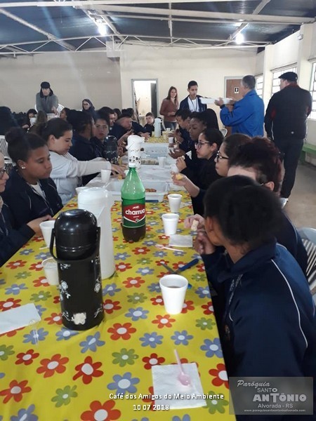 Na manhã do dia 10 de julho se tornou muito especial, realizou - se um café da manhã com todos os alunos do curso Amigos do Meio Ambiente. Além do café os alunos trocaram experiências, fizeram apresentação de músicas também tiveram momentos de espiritualidade com o padre Daniel e com o padre Libanor. Fica aqui o agradecimento da coordenadora do curso Sandra Carvalho, aos alunos pelo carinho e pela União. Agradecimento ao biólogo Sandro Ribeiro pela disponibilidade e profissionalismo, para as amigas e instrutoras do Projeto pescar ACIAL e SOUL pela presença. Aos alunos da paróquia Santo Antônio de Alvorada pela dedicação em tudo o que fazem, prepararam o café com muito amor para receber os colegas de curso. Agradecimento especial ao diretor espiritual padre Libanor Picetti pelo apoio e pela confiança. ·.
