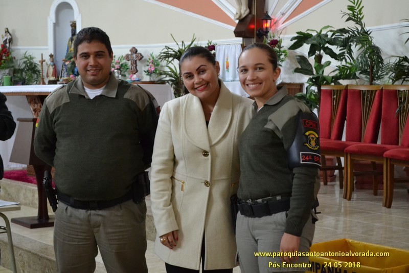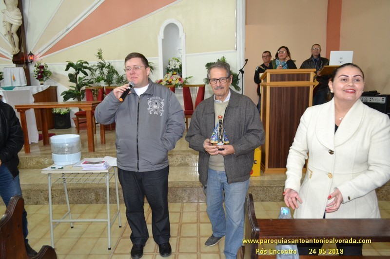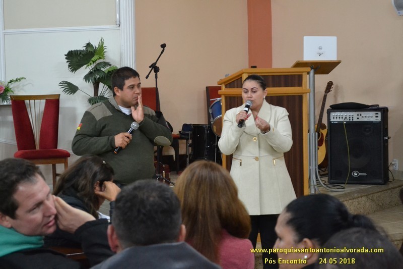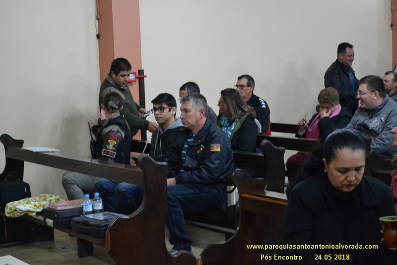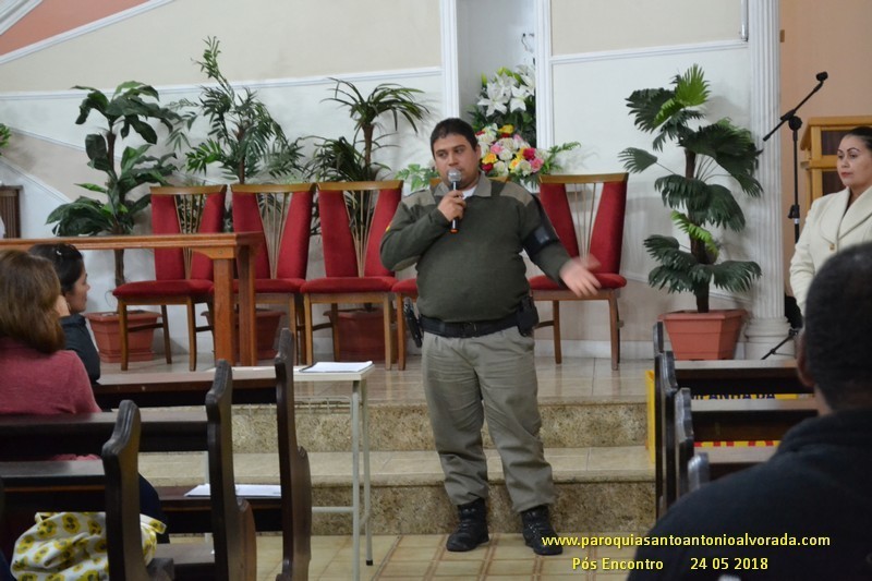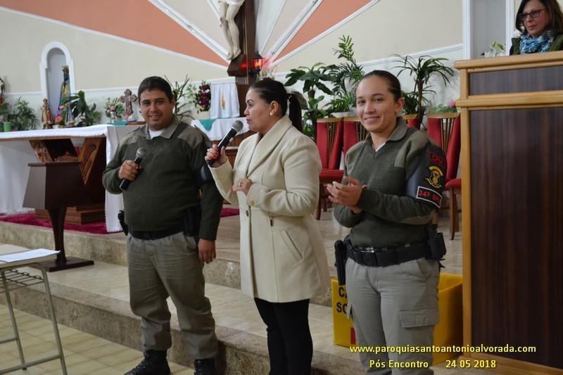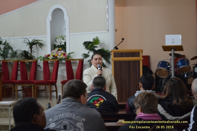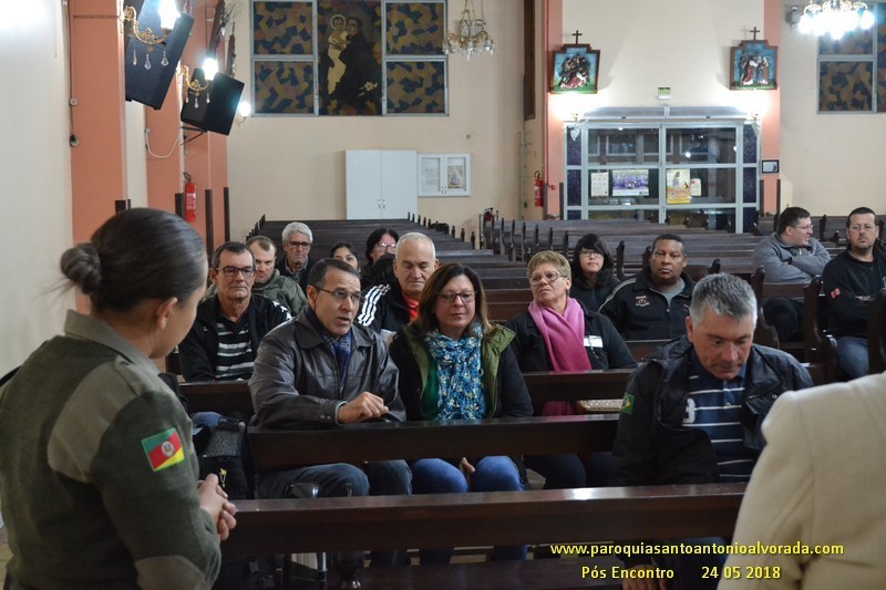 Pós Encontro de Maio teve como tema a Violência Familiar. E este Tema foi apresentado pela Advogada Criminalista e Familiar Hevelin Ferreira e com o apoio da Patrulha da Lei Maria da Penha, representada pelos policiais Uilson e Taís. No final foram homenageados os aniversariantes do mês , e o Padre Daniel José A. da Silva deu a benção aos presentes.