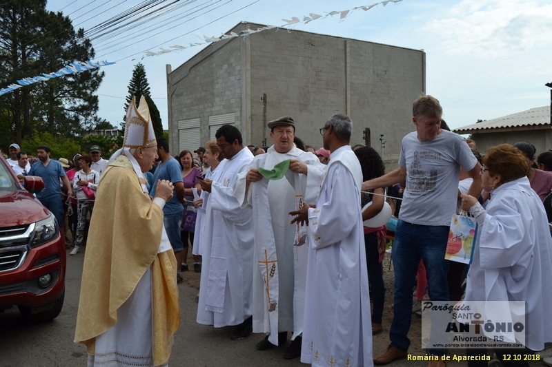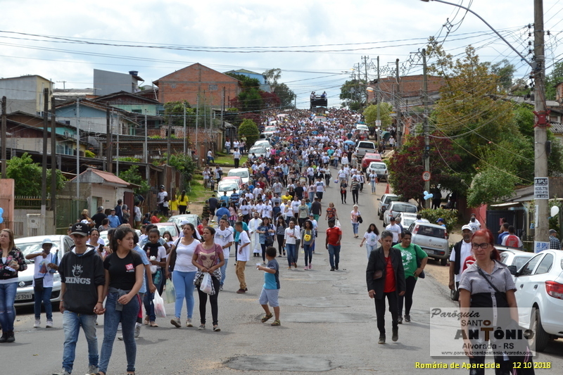 No Dia de Nossa Senhora Aparecida, 12 de outubro aconteceu mais uma procissão em honra a Padroeira do Brasil, Nossa Senhora Aparecida. A Procissão contou com a presença do Arcebispo Emérito da Arquidiocese Dom Tadeus o qual celebrou a Missa no final da Romaria, dos Párocos de todas as paróquias de Alvorada das Irmãs Religiosas, além dos padres que acabam de chegar à área de Alvorada. A comunidade de Alvorada compareceu em grande número, Tradicionalista, Motoqueiros, Políticos empresários enfim todos devotos fizeram sua caminhada e assistiram a Santa Missa no final da Romaria. Ao longo da Procissão que podia se ver muitas pessoas de pés de calços, carregando imagem da Santa de Aparecida em vários tamanhos assim como crianças vestidas de anjos, pessoas com dificuldades de locomoção orando e cantando. Havia também ao longo do percurso postos de coleta de gêneros de primeira necessidade os quais foram destinados a famílias carentes. Mais fotos no Facebook da Paróquia.