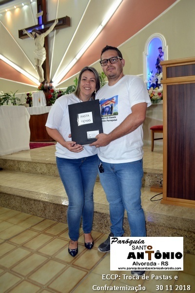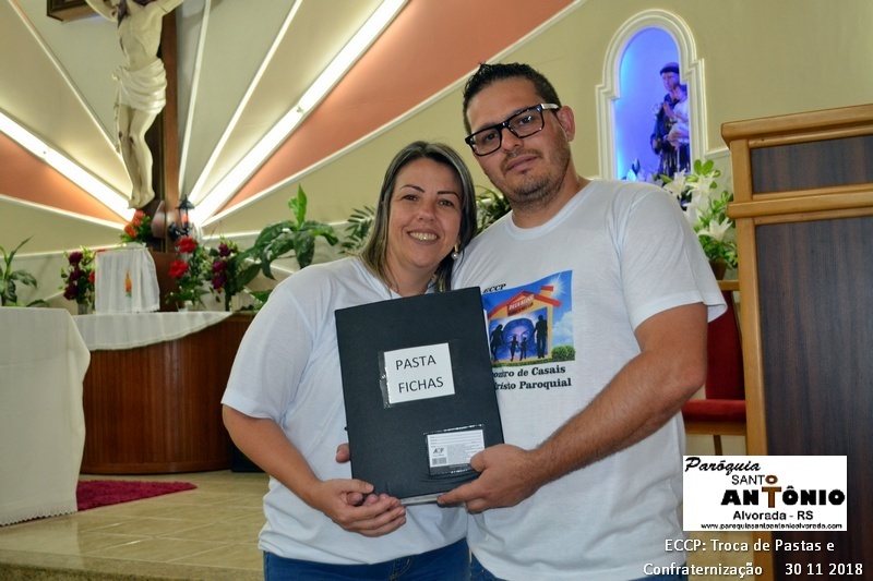 Encerramento do ECCP do Ano de 2018. Na ocasião foram apresentados os novos Casais que assumiram Pastas do Grupo Dirigentes do ECCP. Após a apresentação e entrega das Pastas os Casais que as assumiram foram abençoados pelo Padre Libanor assim como aconteceu aos Casais que se desligaram do grupo dirigente onde o Padre agradeceu a dedicação e o carinho como conduziram seus trabalhos. Após toda familia ECCP que estava presente foram convidadas a participarem de uma pequena confraternização.