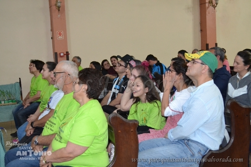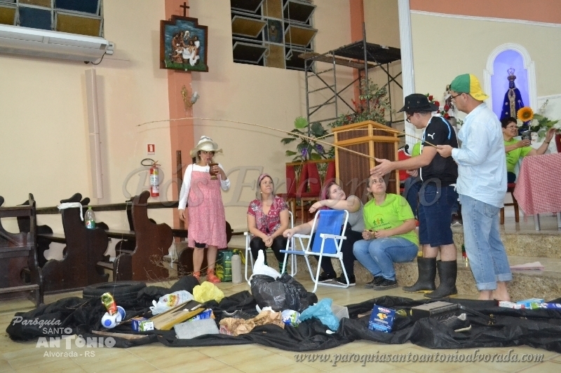 Na ultima quinta feira do mês aconteceu mais um Pós Encontro do ECCP. Desta vez o tema foi o meio ambiente. Os paroquianos Amigos do Meio Ambiente encenaram o que realmente acontece no dia a dia em nossas comunidades, maltratando o meio ambiente e nos prejudicando com nossos atos contra a natureza. No final do Encontro,foram homenageados os aniversariantes do Mês. O casal Flávio e Clarisse foram sorteados para ficarem com a guarda da imagem de Nossa Senhora Aparecida até o próximo Pós Encontro. E depois o Padre Libanor deu bençãos a todos que estavam presente.