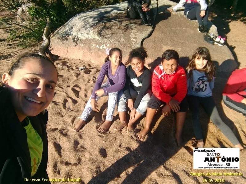 Os alunos do Curso do Meio Ambiente da Paroquia Santo Antonio, no dia 25 de maio, realizaram uma Saída de campo ao Parque Estadual de Itapuã. Durante a atividade os mesmos fizeram a trilha da Onça e após participaram de uma confraternização na Praia das Pombas.
