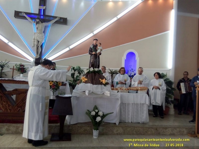 No ultimo domingo de Maio na Paróquia Santo Antonio de Alvorada foi celebrado a Primeira Missa do Tríduo de Santo Antonio. Esta Missa teve com Pregador o Padre Claudio Biauchet que apresentou o tema: o Ano do Laicato: a missão que recebemos no Batismo. Nesta Missa teve a Benção da Saúde e a Benção dos pãezinhos de Santo Antonio os quais foram distribuídos para os doentes presente na ocasião.