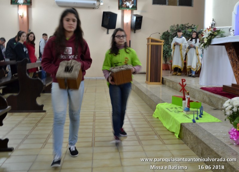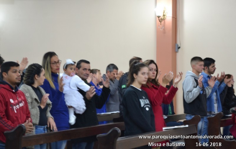 No sábado dia 16 de junho ,a liturgia da Missa que foi celebrada pelo Padre Rogério Ferraz, a liturgia ficou sob aos cuidados dos jovens do grupo ONDA. Nesta Missa, estavam visitando a Paróquia as Irmãs Vicentinas Filhas da Caridade de São Vicente de Paulo. Neste dia Catequista Inês e João Batista receberam a benção das suas alianças por motivo de seus 25 anos de matrimônio. Após a benção final aconteceu os Batizados os quais foram ministrados pelo Padre Daniel José Silva.
