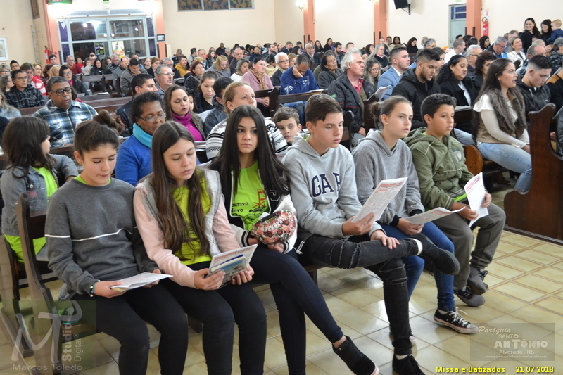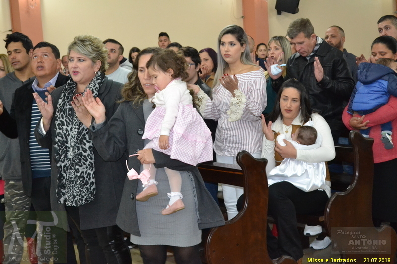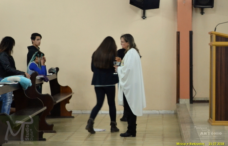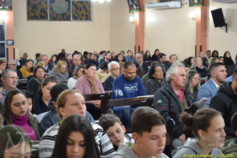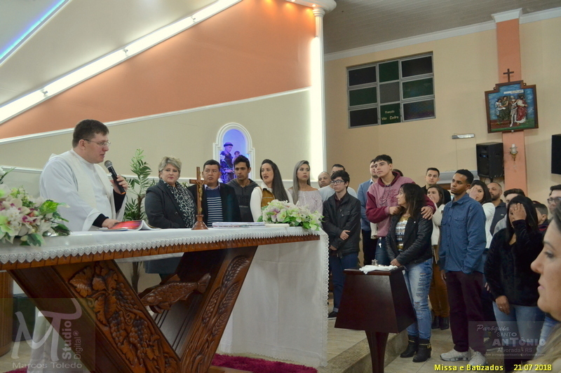 Neste sábado 21 de julho a Missa ficou sob os cuidados do Grupo ONDA da Paróquia Santo Antônio de Alvorada a qual foi celebrada pelo Padre Rogério Ferraz. No final da Santa Missa foi homenageado pela passagem de seu aniversário o Sr. Daniel. Após a Missa, foi celebrado o primeiro Sacramento da Igreja, o Sacramento do Batismo. E ficou sob a responsabilidade do Padre Daniel José A. da Silva.