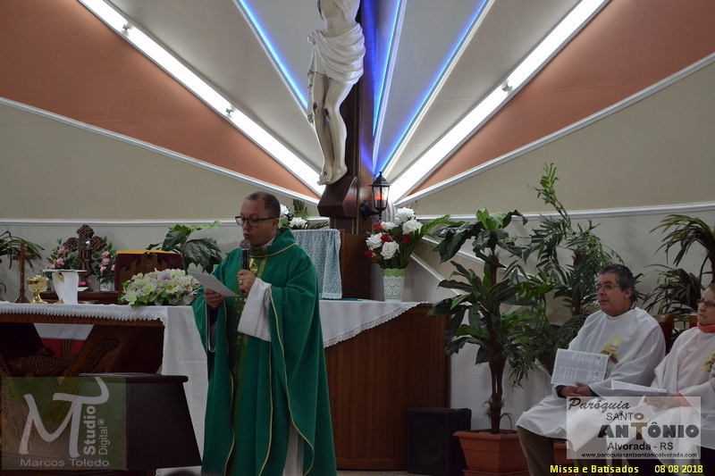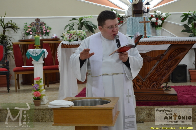 Na Missa deste sábado 11 de agosto na Paróquia Santo Antonio de Alvorada, em que teve a liturgia aos cuidados do grupo de jovens ,JOC a Santa celebração foi ministrada pelo Padre Rogério Ferraz em que ao final da Celebração homenageou e abençoou os Pais Presentes pela passagem do dia dos Pais . Após a Missa o Padre Daniel José da Silva ministrou o primeiro Sacramento, o Batismo.