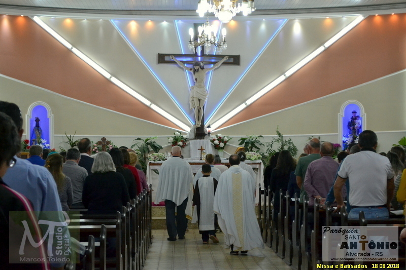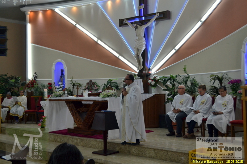 Nestes sábado 18 de agosto na Paróquia Santo Antônio de Alvorada após a Missa celebrada, aconteceu o Batizados, os quais assim como a Missa foram ministrados pelo Padre Rogério Ferraz.