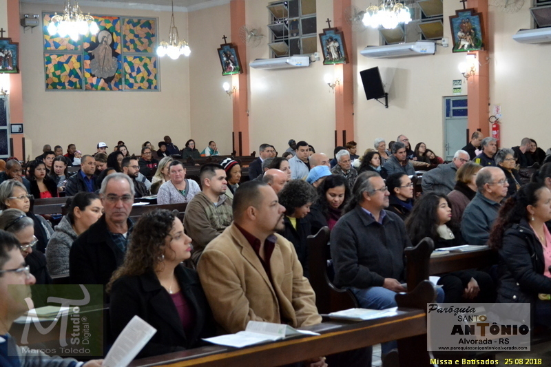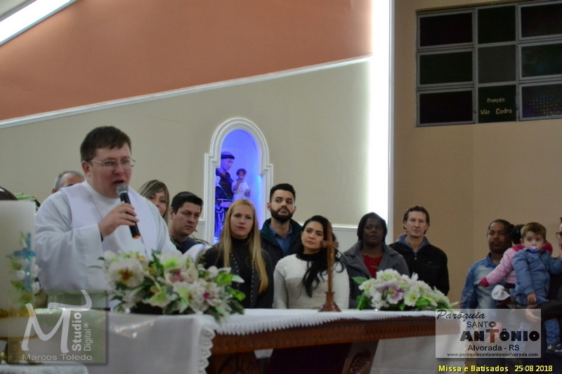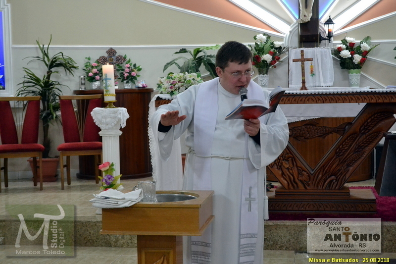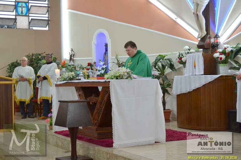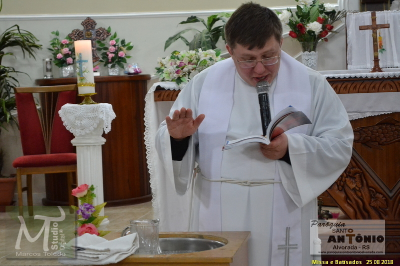 Neste sábado 25 de agosto, o ultimo do mês, Pais e Padrinhos trouxeram consigo à Paróquia Santo Antonio de Alvorada seus tesouros, para receberem o primeiro Sacramento da Igreja ; o Batismo. As Celebrações foram ministradas pelo Padre Daniel José A. da Silva.