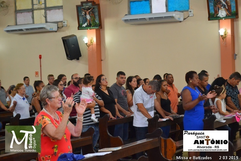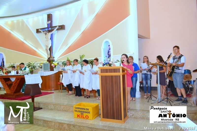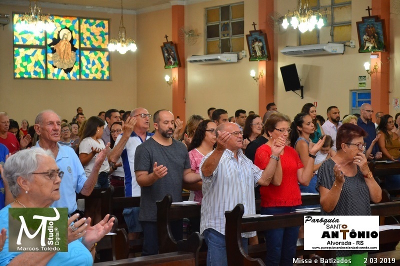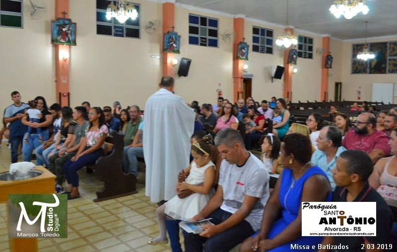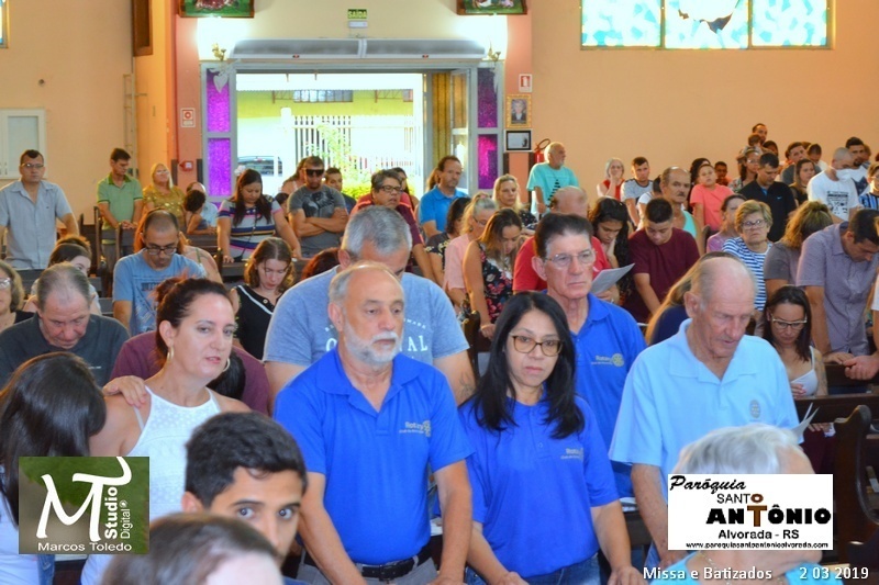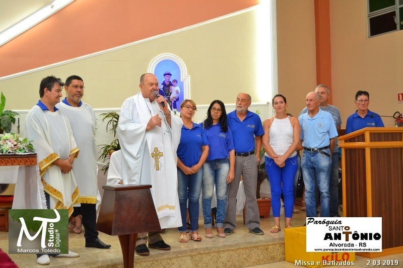 Neste primeiro sábado de Março dia 2, a liturgia da Santa Missa, foi preparada pelo Rotary Club de Alvorada e celebrada pelo Padre Joel da Silva. No momento das comunicações ao final Santa Missa as quais foram feita pelo Padre Libanor Pichetti que na oportunidade pediu aos Rotarianos presentes que se aproximassem do ambão do leitor a fez agradecimento pelos trabalhos e apoio prestado pelo Rotary a Comunidade da Paróquia Santo Antonio de Alvorada. Logo Após a benção final foi ministrado o primeiro Sacramento da Igreja ; o Batismo, que foi celebrado pelos dois Padre , a um grupo de crianças.