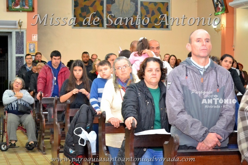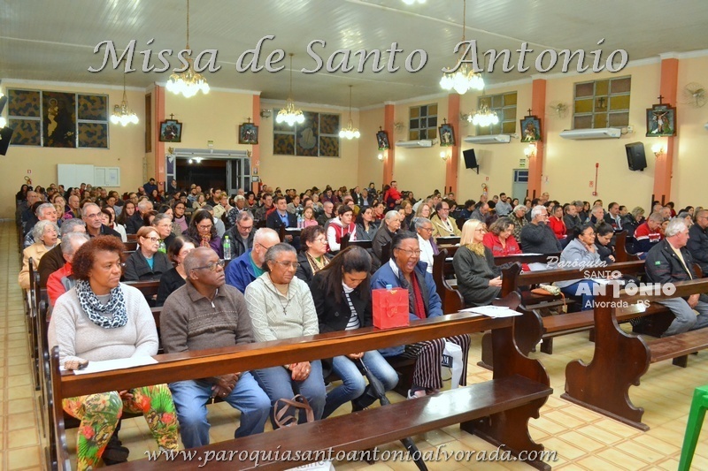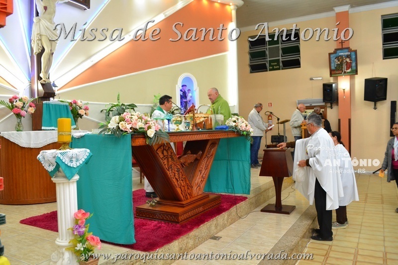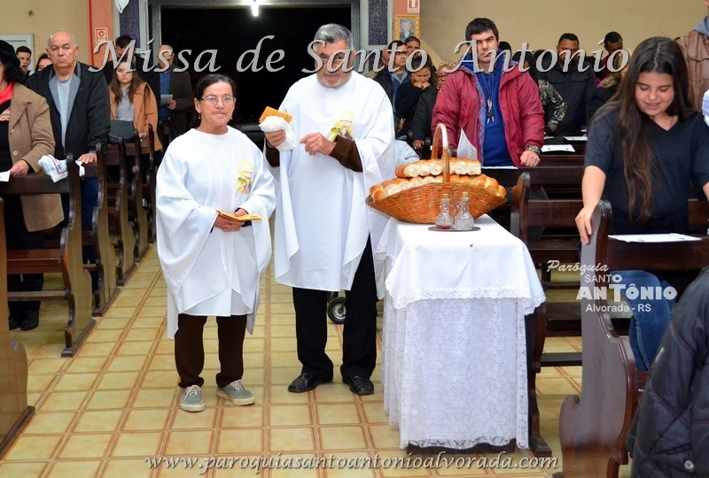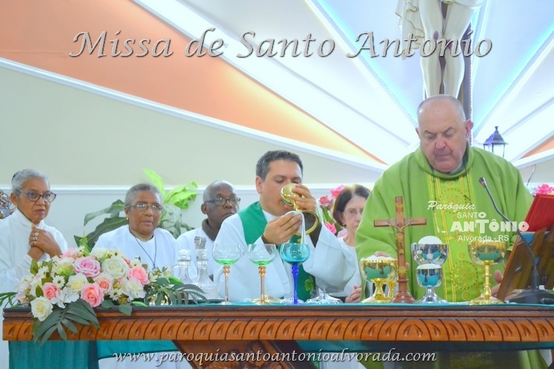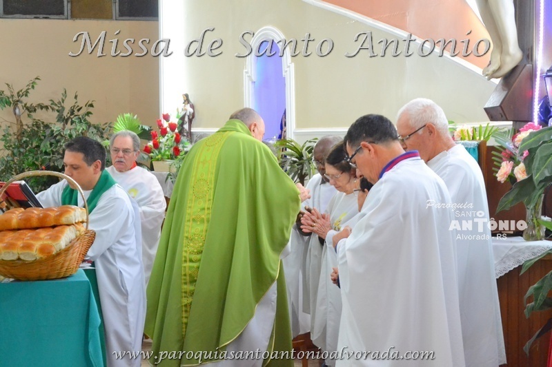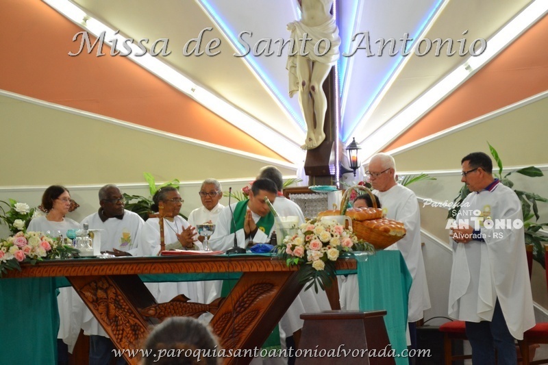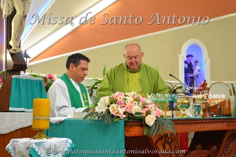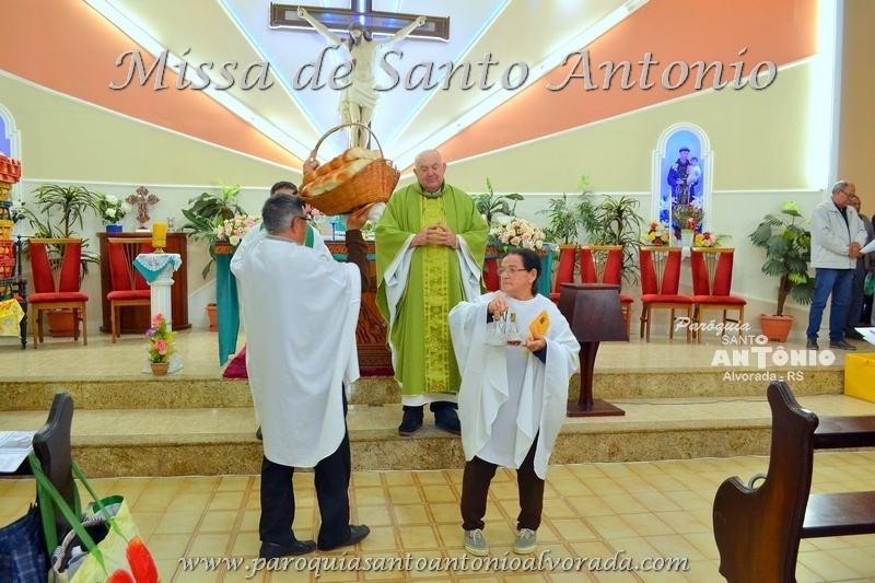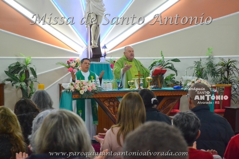 A Missa de Santo Antonio foi celebrada pelo Padre Libanor e co celebrada pelo Padre Joel. na ocasião a comunidade presente receberam a benção da saúde dos objetos e dos pãezinhos os quais foram doados aos presentes o que sobrou foi encaminhados a entidades filantrópicas de Alvorada.