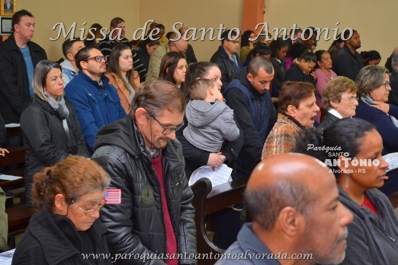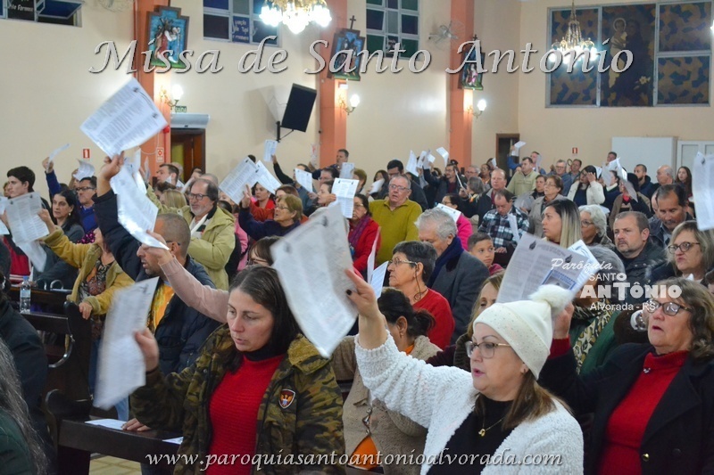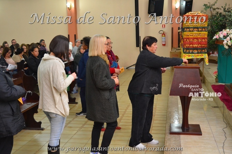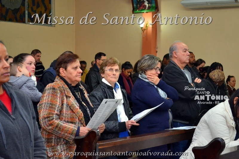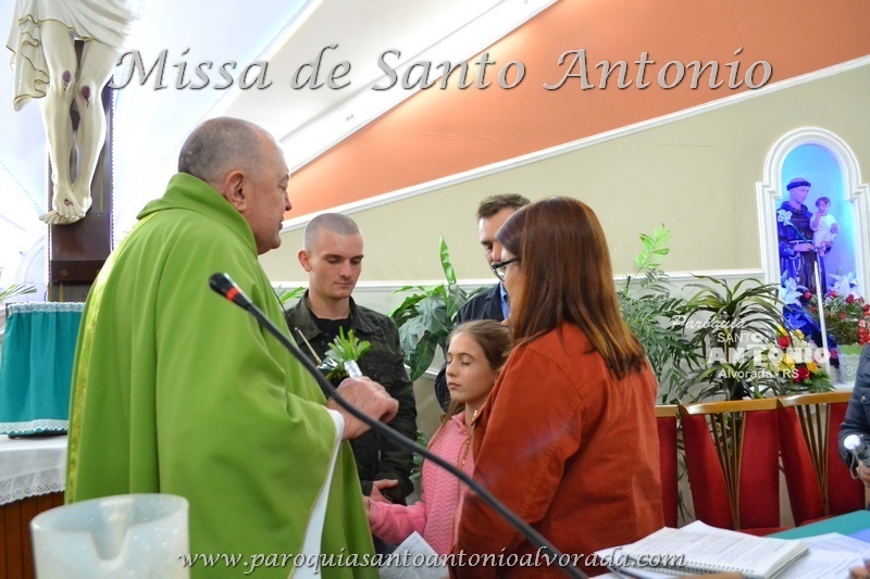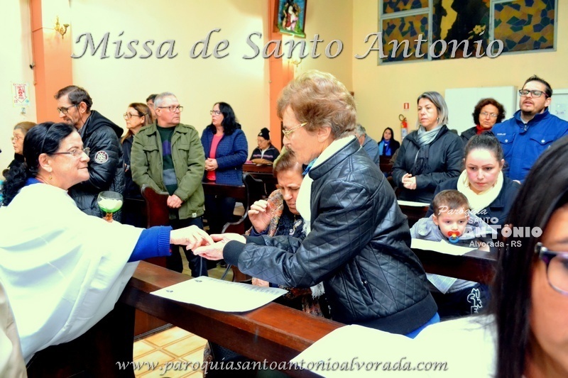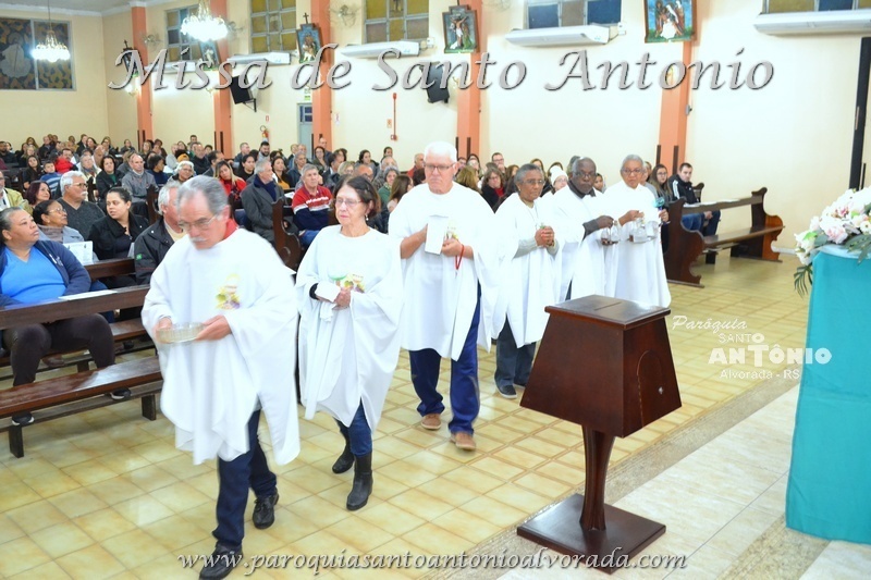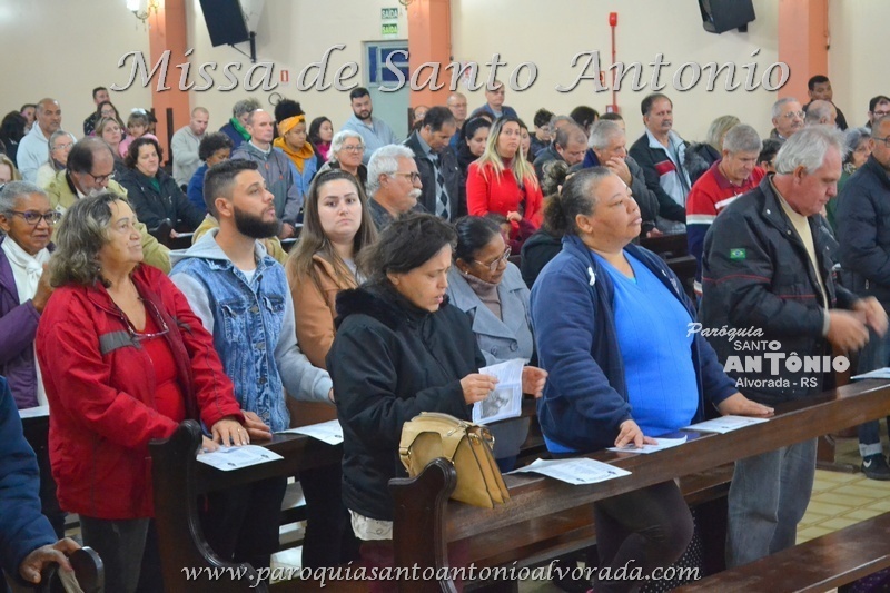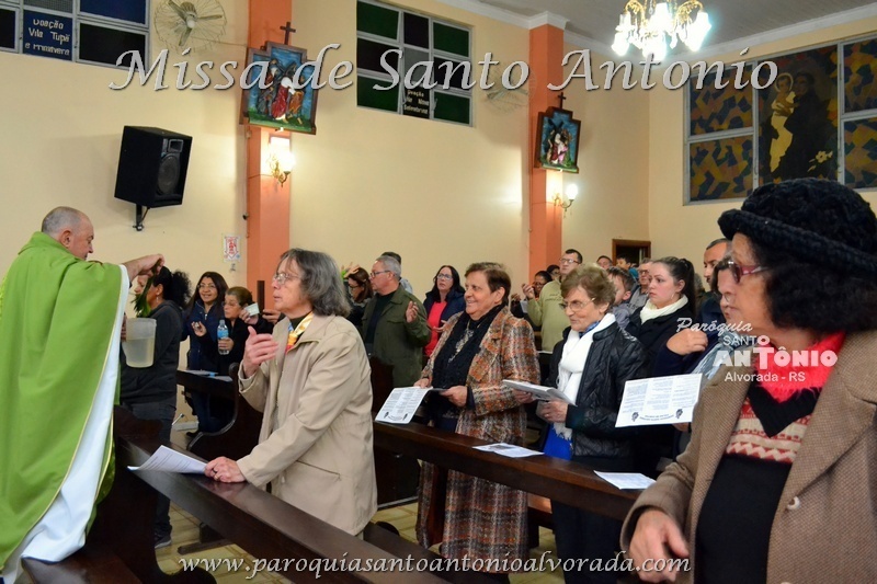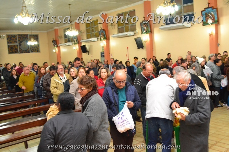 A Missa de Santo Antonio foi celebrada pelo Padre Libanor e co celebrada pelo Padre Joel. na ocasião a comunidade presente receberam a benção da saúde dos objetos e dos pãezinhos os quais foram doados aos presentes o que sobrou foi encaminhados a entidades filantrópicas de Alvorada.