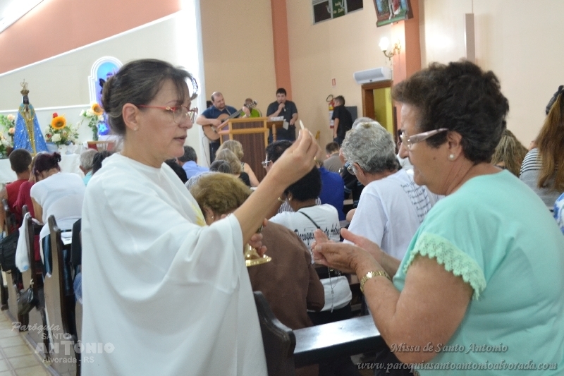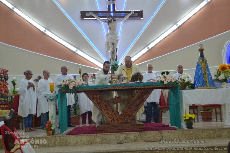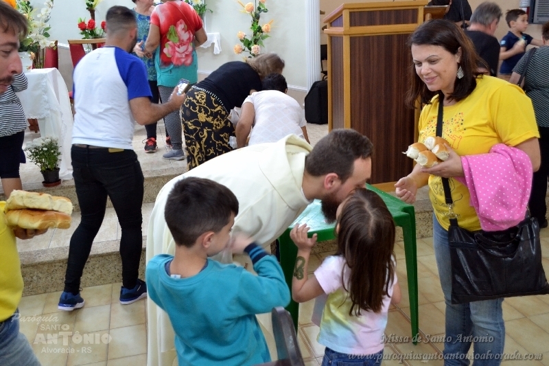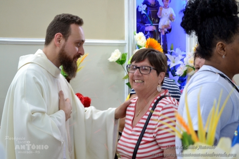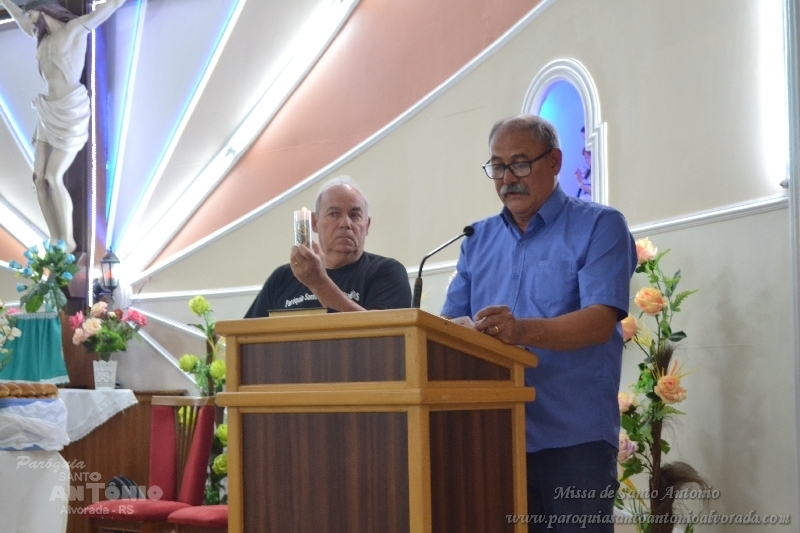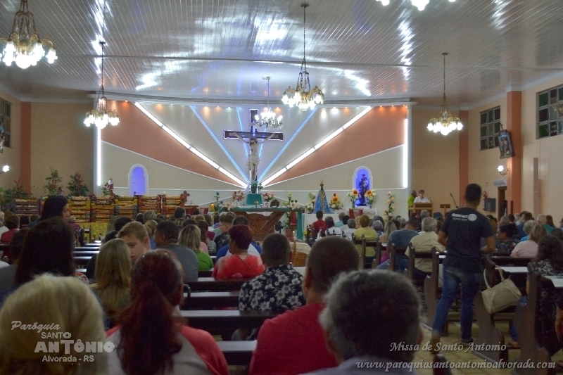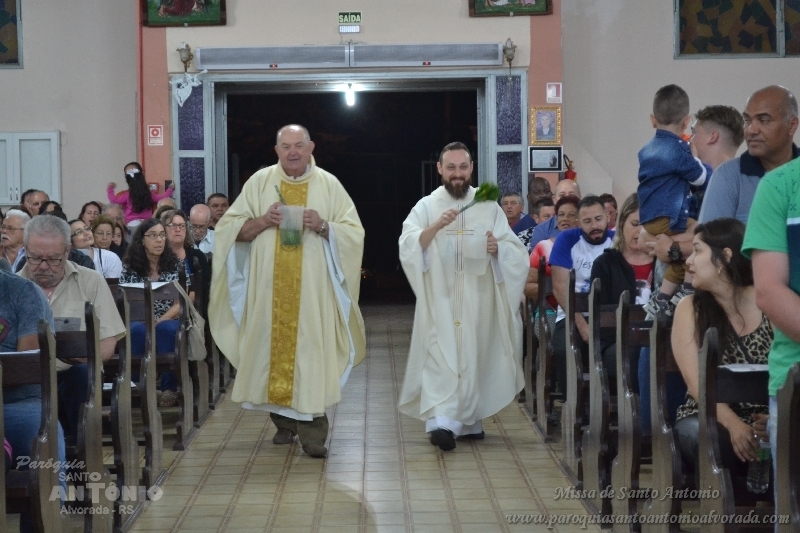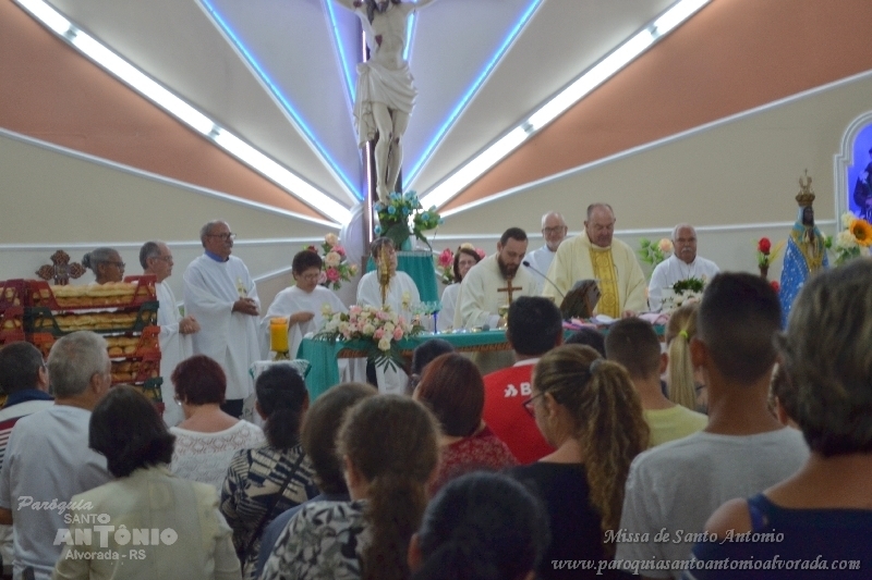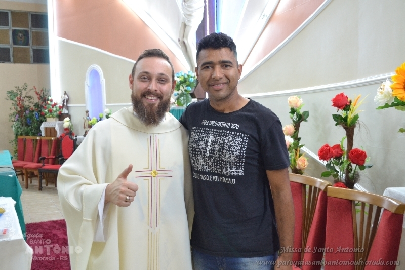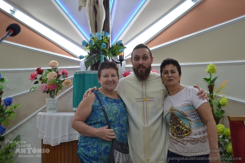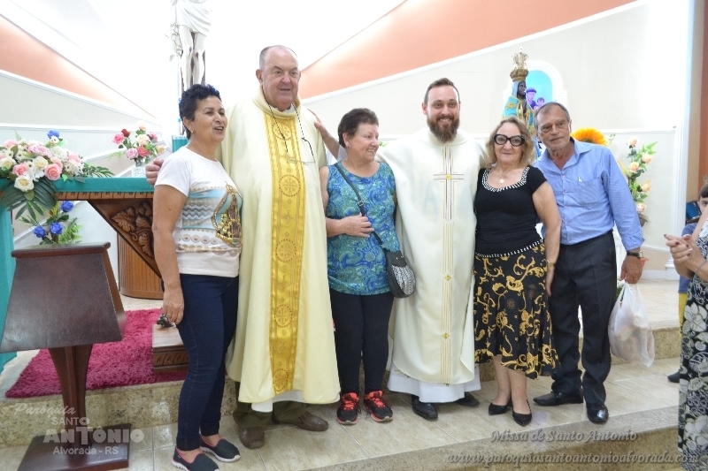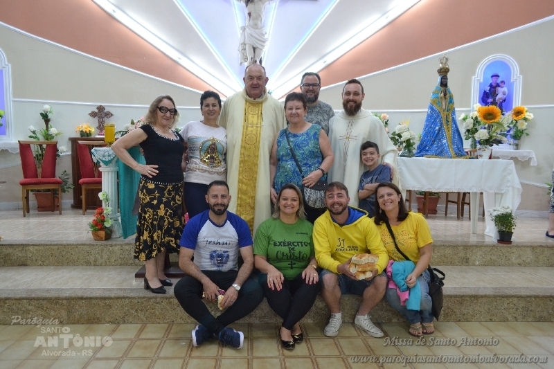 Missa de Santo Antonio com a benção dos objetos da saúde dos pãezinhos os quais foram distribuidos a comunidade presente e a lares de idosos. Missa celebrada pelo Padre Libanor Pichetti e co celebrado pelo padre Maico Pezzi. Muitas pessoas ao final pediram benção especiais. Na ocasião a Paroquia recebeu a visita dos tios da Jornada da Juventude onde o Padre Maicon desempenha o trabalho de diretor espiritual.