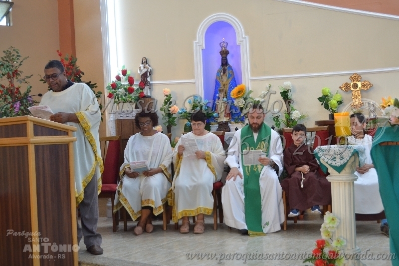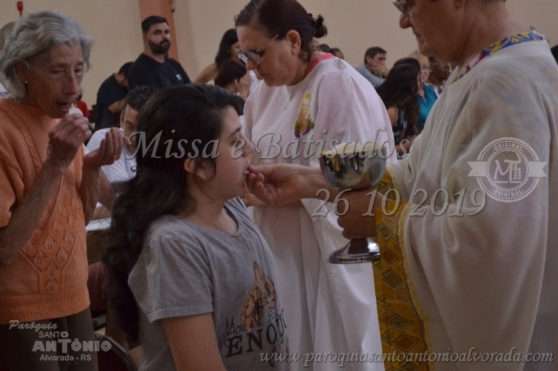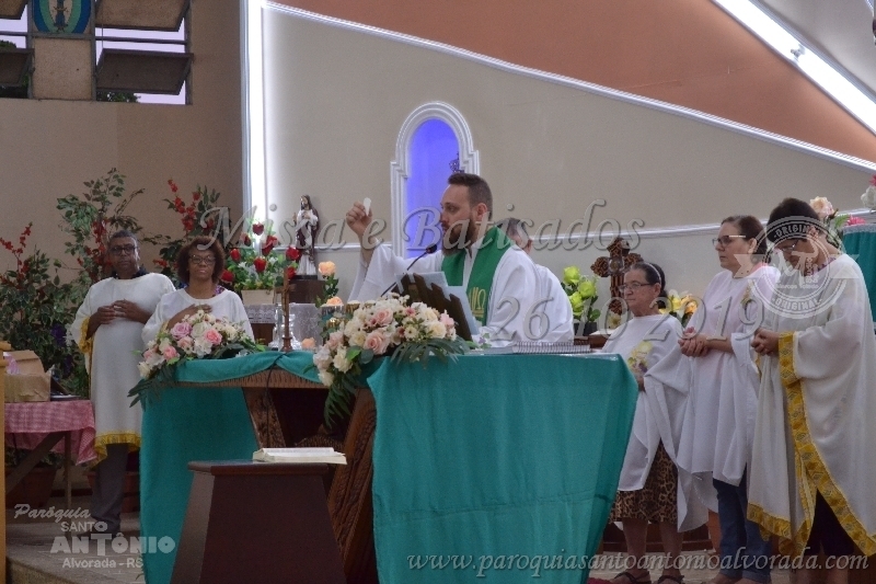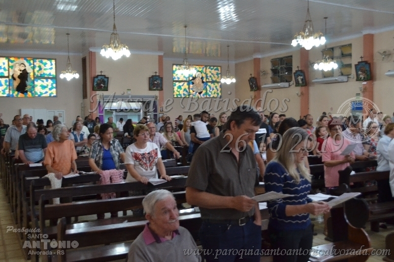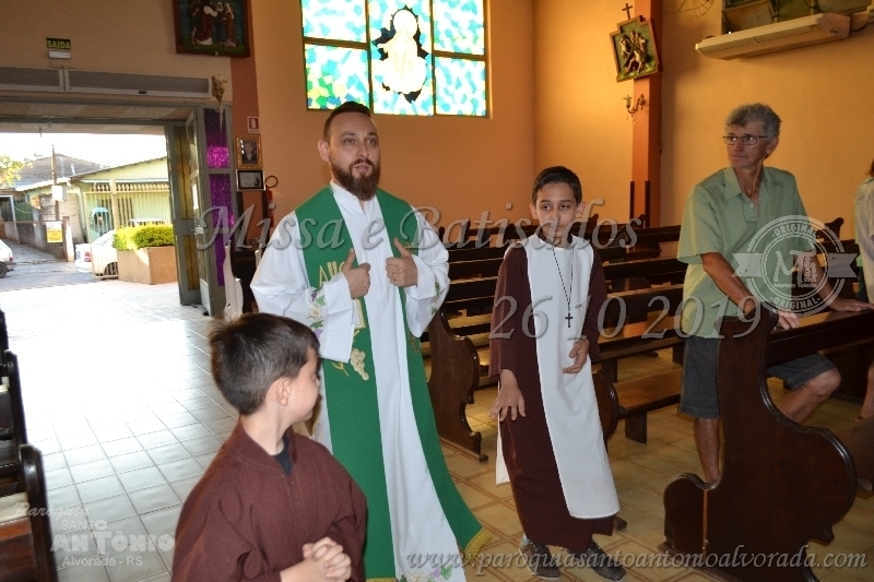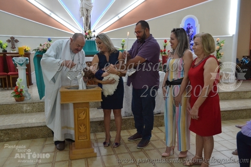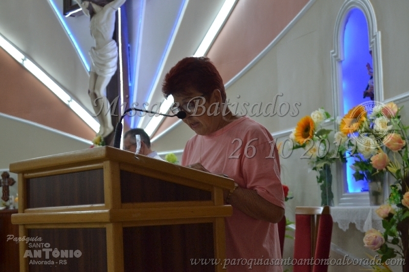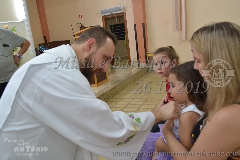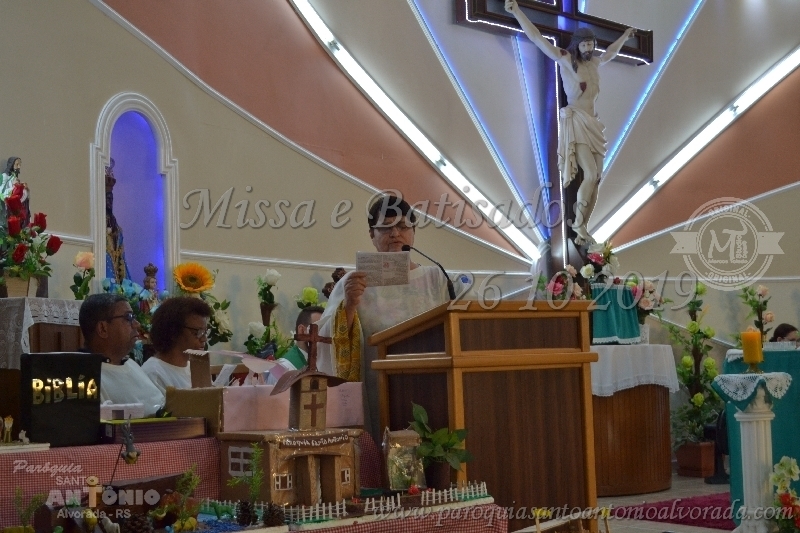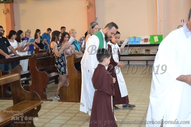 Ultimo sábado do mes de outubro. Missa celebrada pelo Padre Maico Pezzi e liturgia a cargo da Pastoral do Batismo com animação da turma da Jornada da Juventude.´pós Missa o Padre Libanor Pichetti ministro o Primeiro Sacramento da Igreja. O Batismo.