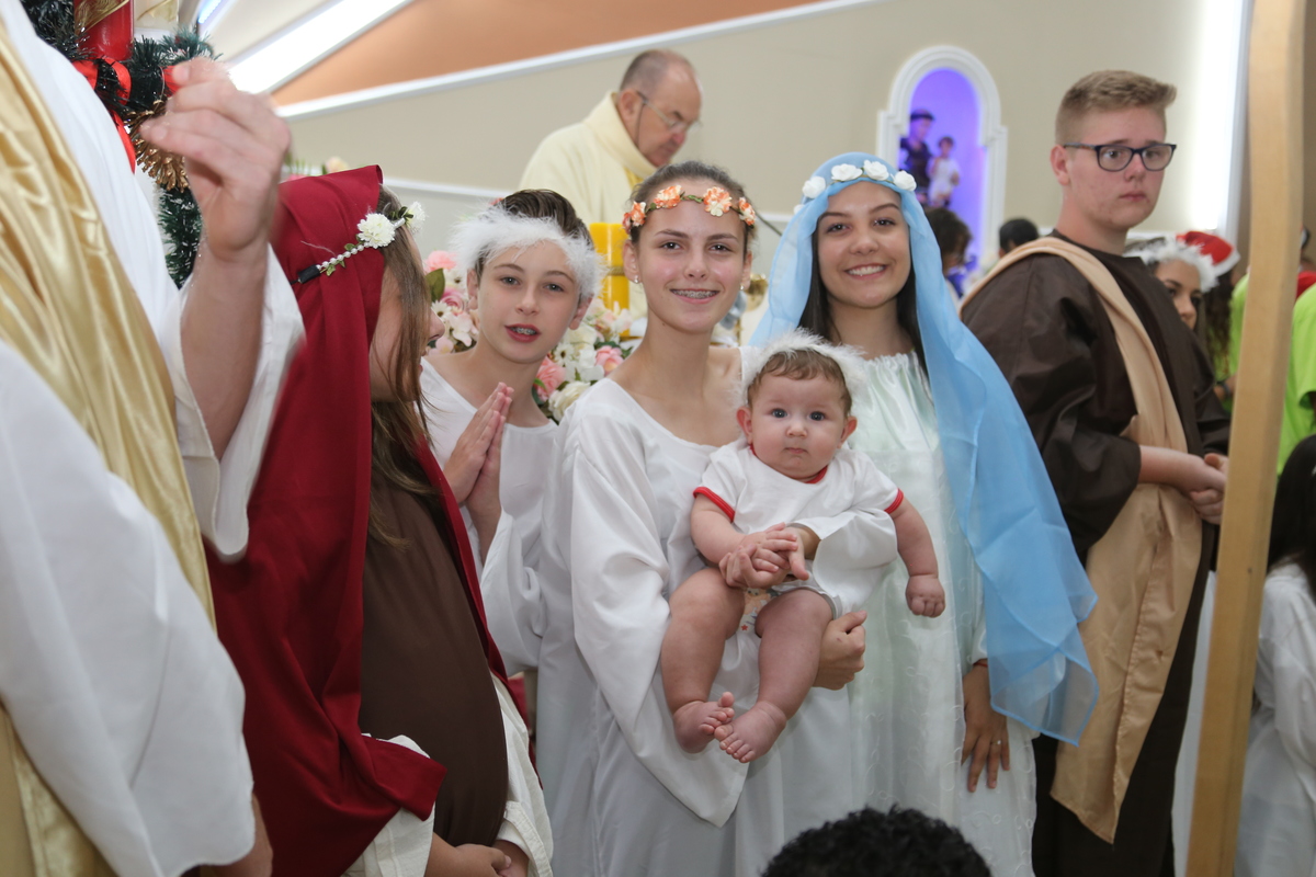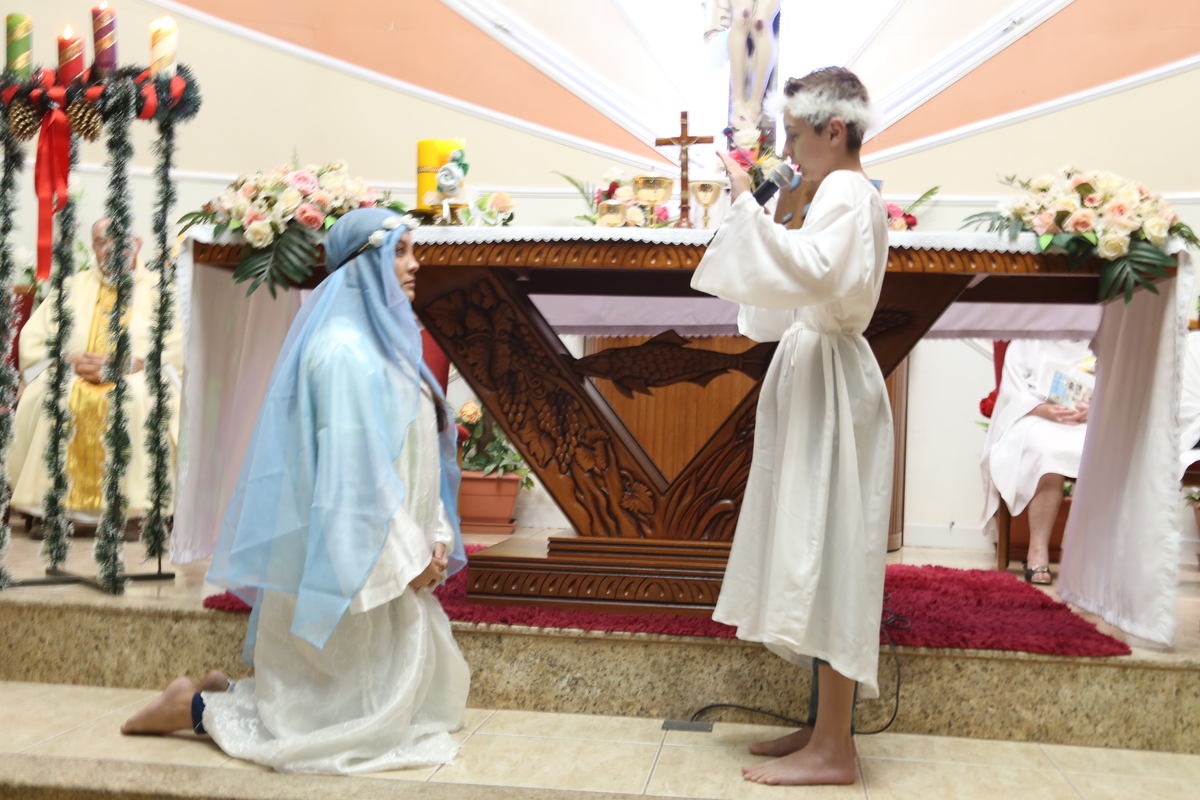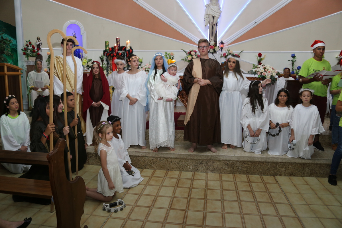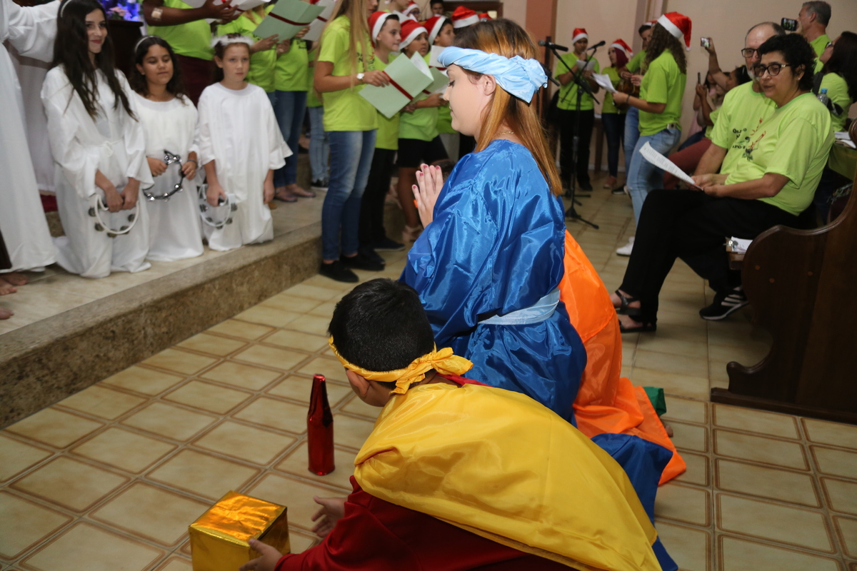 Encenação do Nascimento de Jesus na Santa Missa de Natal celebrada pelo Padre Libanor e concelebrada pelo Padre Maico, a encenação e o coral ficou por conta dos jovens do ONDA - Objetivo Novo de Apostolado